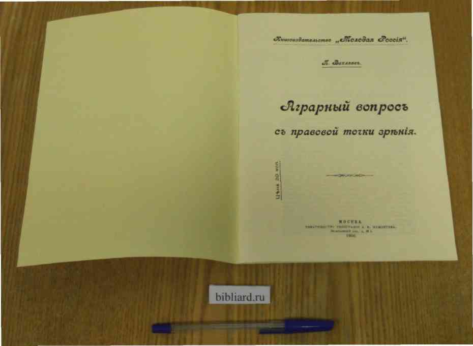 Аграрный вопрос с правовой точки зрения. Критические заметки по аграрному вопросу / Вихляев П. - М.: Молодая Россия, 1906. - 65 c. – формат B5 - репринтная копия