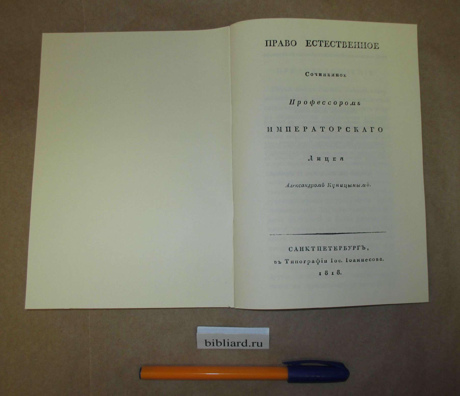 - Право естественное / Куницын А. – С.-Пб.: Тип. И. Иоаннесова, 1818. – 144 с. - репринтная копия