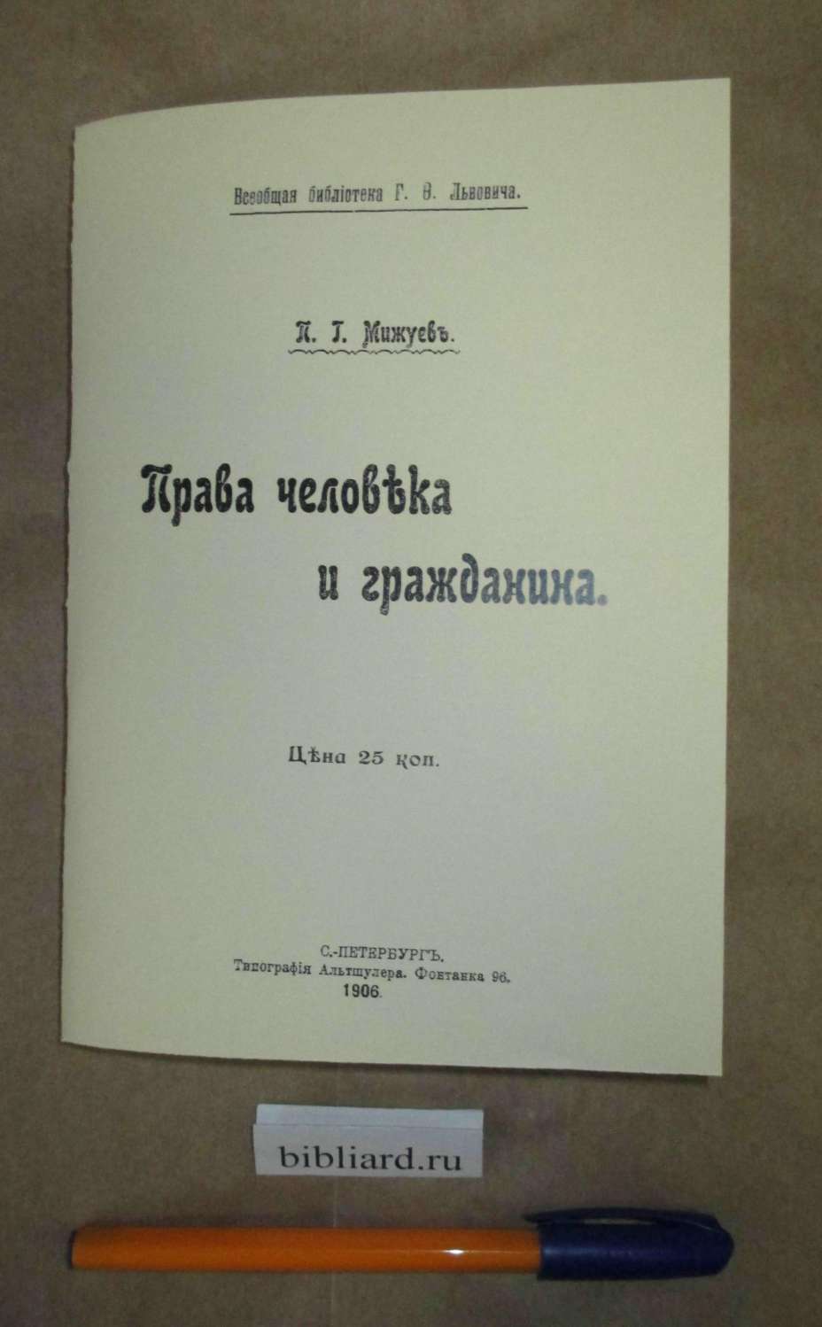 Права человека и гражданина / Мижуев П.Г. - С.-Пб.: Тип. Альтшулера, 1906. - 115 с. - формат А5 - репринтная копия