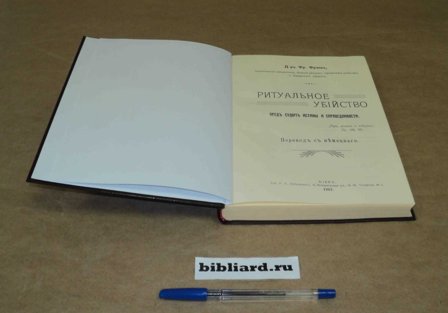 Ритуальное убийство пред судом истины и справедливости: Перевод с немецкого / Франк Ф., католич. свящ., б. депутат Герм. рейхстага и Бавар. ландтага. – Киев: Тип. Р.К. Лубковского, 1912. – 359 с. - репринтная копия