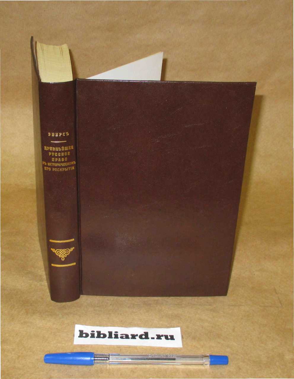 Древнейшее русское право в историческом его раскрытии: Перевод с немецкого / Эверс И.Ф.Г.; Пер.: И. Платонов. – С.-Пб.: Тип. Штаба Отд. корп. вн. стражи, 1835. – 447 с. – репринтная копия