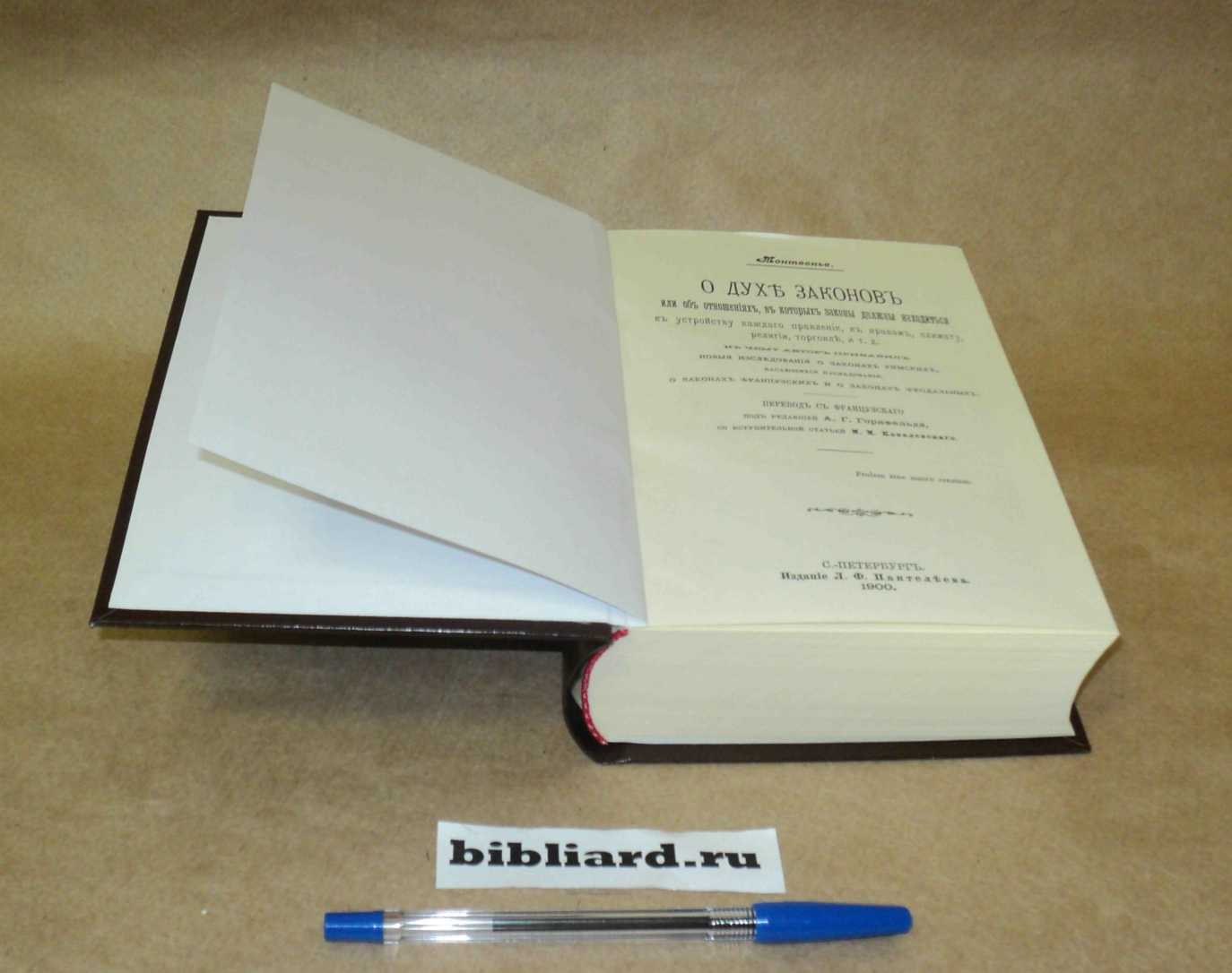 О духе законов, или Об отношениях, в которых законы должны находиться к устройству каждого правления, к нравам, климату, религии, торговле и т. д.: К чему автор прибавил новые исследования о законах римских, касающихся наследования, о законах французских и о законах феодальных: Перевод с французского / Монтескье Ш.Л.; Пер. под ред.: А.Г. Горнфельд; Вступ. ст.: М.М. Ковалевский. – С.-Пб.: Л. Ф. Пантелеев, 1900. – 800 с. - репринтная копия