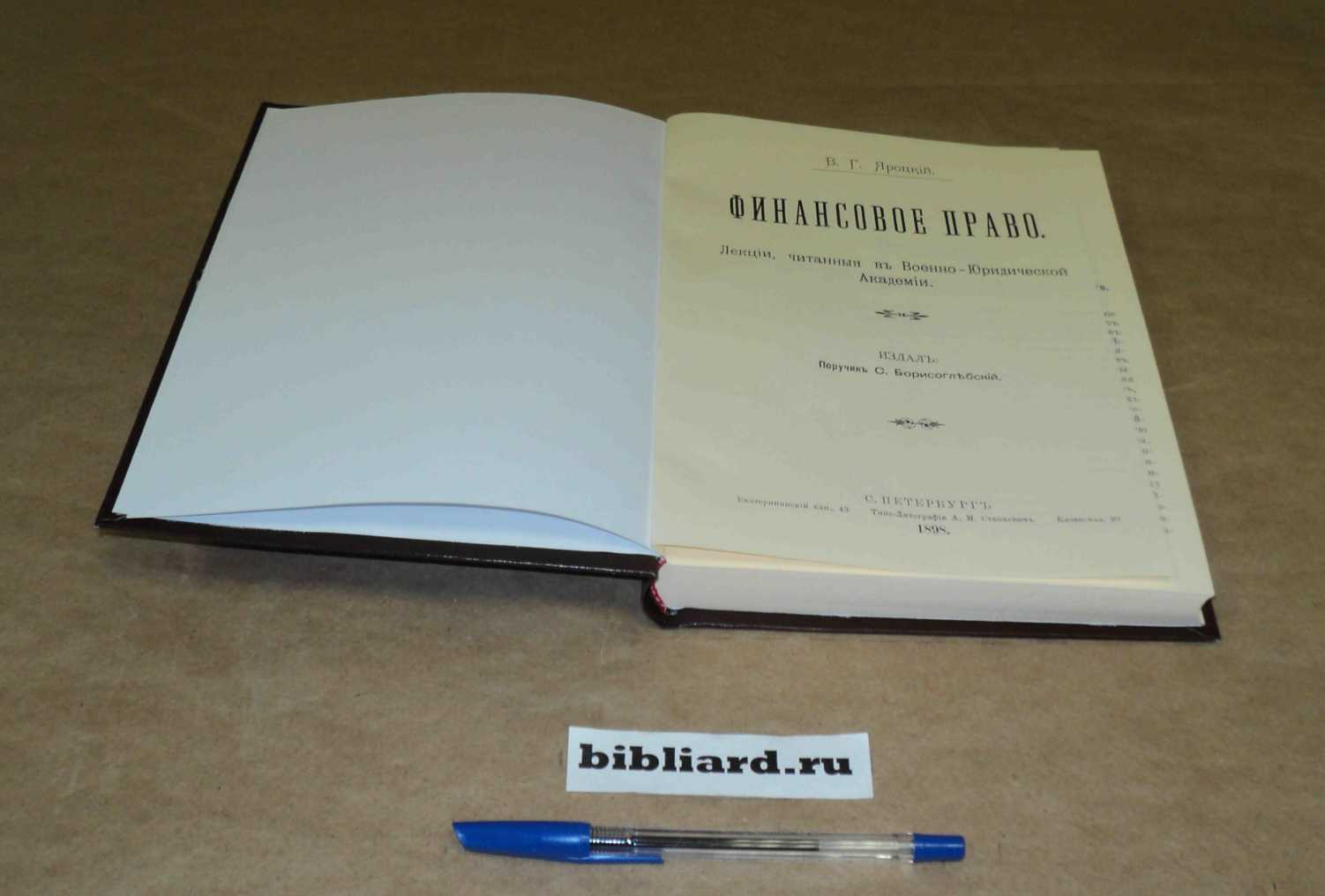 Финансовое право / Яроцкий В.Г. – С.-Пб.: Изд. поруч. С. Борисоглебский, 1898. – 368 с. – репринтная копия
